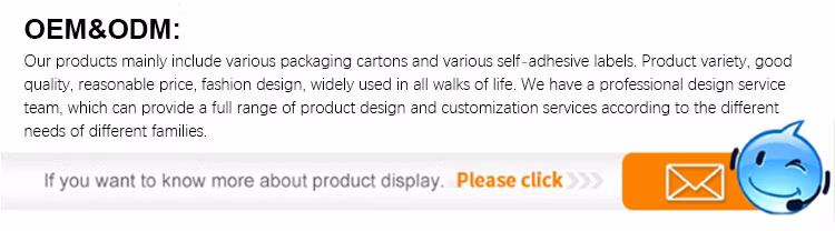 ls una empresa profesional de servicios de impresión y embalaje. Nuestros productos incluyen principalmente varios envases de cartón y varias pegatinas. Variedad de productos, buena calidad, precio razonable, moda de diseño, ampliamente utilizado en diversas industrias. Contamos con un equipo de servicio de diseño profesional, que puede proporcionar diseño de productos y servicio personalizado en todo el mundo de acuerdo a las diferentes necesidades de los diferentes householos. Tenemos una ubicación conveniente para proporcionar bienes a las ciudades portuarias y para facilitar la exportación. Hemos establecido relaciones a largo plazo con muchas empresas conocidas en Asia, Europa, América y África. Nos esforzamos por crear valor para nuestros clientes. Gracias a su precio competitivo y a su servicio satisfactorio, nuestros productos han ganado una buena reputación entre los clientes. lf tenemos la oportunidad de cooperar con usted, haremos todo lo posible para ofrecerle la mejor calidad y el mejor servicio. Esperamos establecer y mantener relaciones comerciales a largo plazo con usted.