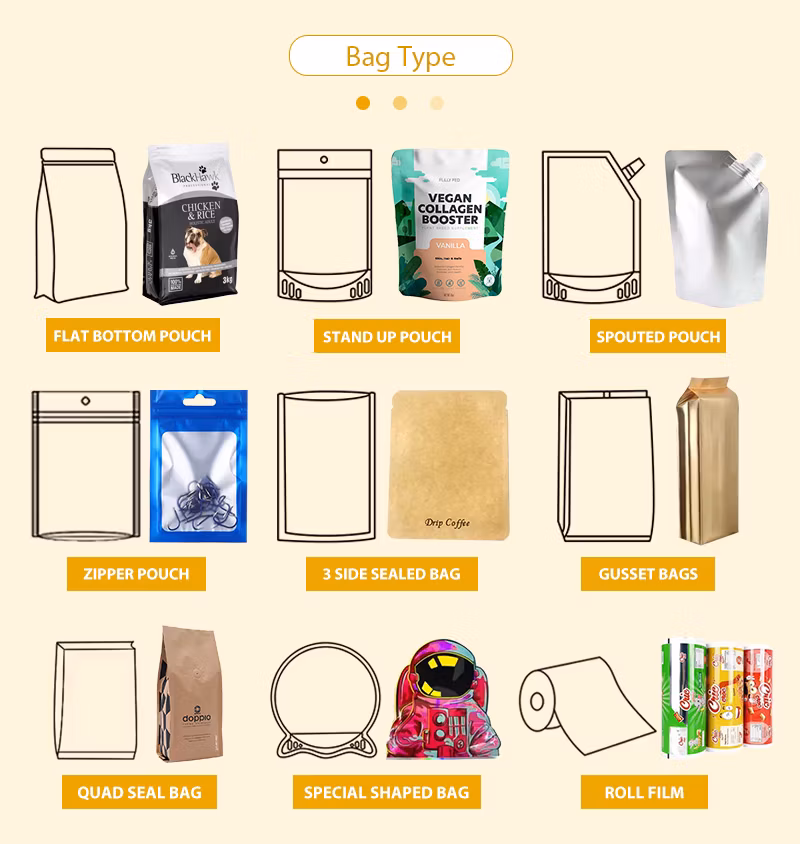 R: Nuestra fábrica puede producir la mayoría de los tipos de envases flexibles, incluyendo la bolsa de café, la bolsa de comida para mascotas, la bolsa de panadería, la bolsa/bolsa de pie, la bolsa de cremallera, la bolsa de descarga, la bolsa de fondo plano, la bolsa/bolsa de sello trasero, el rollo de película y así sucesivamente.