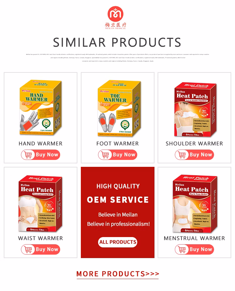 Meilan cuenta con 15 líneas de producción nacionales avanzadas y 36 conjuntos de varias máquinas de producción de almohadillas térmicas. El equipo de almohadilla de calor que fue desarrollado y diseñado independientemente puede producir almohadillas de calor de cualquier forma. Con un laboratorio estándar y una sala de pruebas de temperatura y humedad constante, ha logrado cultivar varios investigadores y desarrollar más de 130 tipos de almohadillas de calor. En particular , los parches cutáneos de temperatura media y baja, los parches de función de forma especial, los parches de acupoint granular, las almohadillas de calor pesado, las máscaras oculares de vapor, Que Meilan se ha desarrollado de manera independiente están entre los mejores en China. La producción anual de almohadillas térmicas es de hasta 120 millones de piezas con una producción diaria de más de 500.000 piezas.